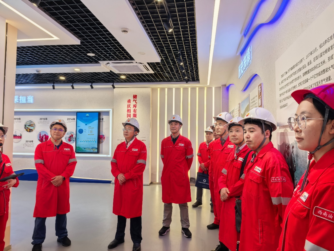 蒋华全详细介绍了重庆相国寺储气库有限公司的发展历史、业务特色、党建发展、人才引进需求、人才占比等,随后带领大家参观了相国寺储气库集注站的注采气工艺流程、智能化管理平台以及储气库展览厅。谭勇对重庆相国寺储气库有限公司长期给予我校人才培养和就业工作的支持表示衷心的感谢。他表示,学校要进一步加强与重庆相国寺储气库有限公司在教学资源建设、实习实训教学、工程化背景师资队伍建设、毕业生就业能力提升等方面的合作,不断深化产教融合,促进毕业生高质量就业。