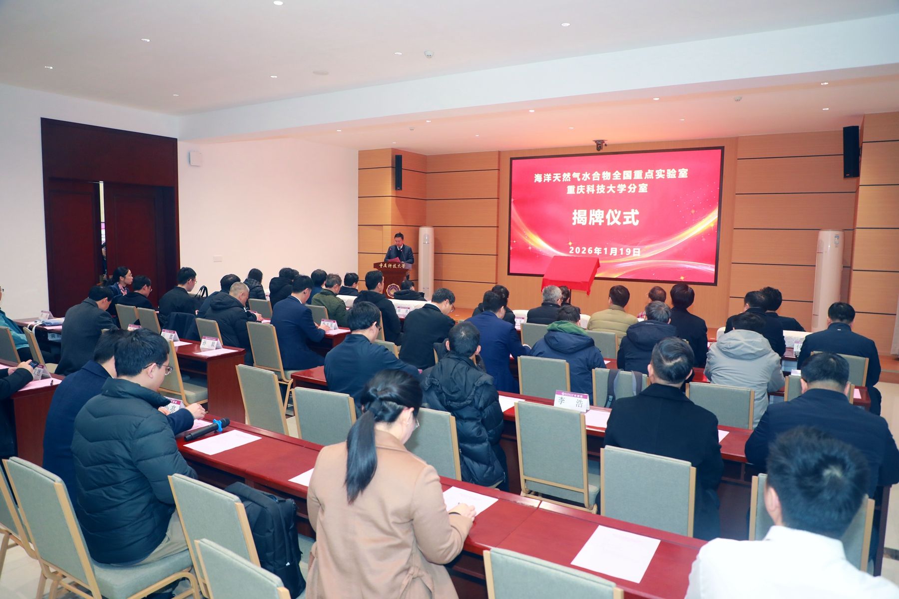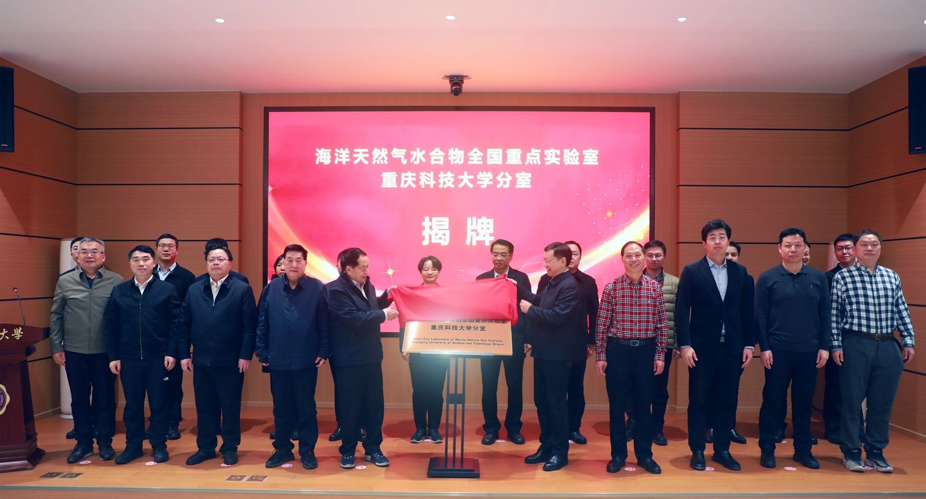 1月19日,海洋天然气水合物全国重点实验室重庆科技大学分室揭牌仪式在我校举行,标志着我校与中国海洋石油集团有限公司共同建设的全球首套海洋天然气水合物动力学与地层风险评价一体化实验平台正式建成。